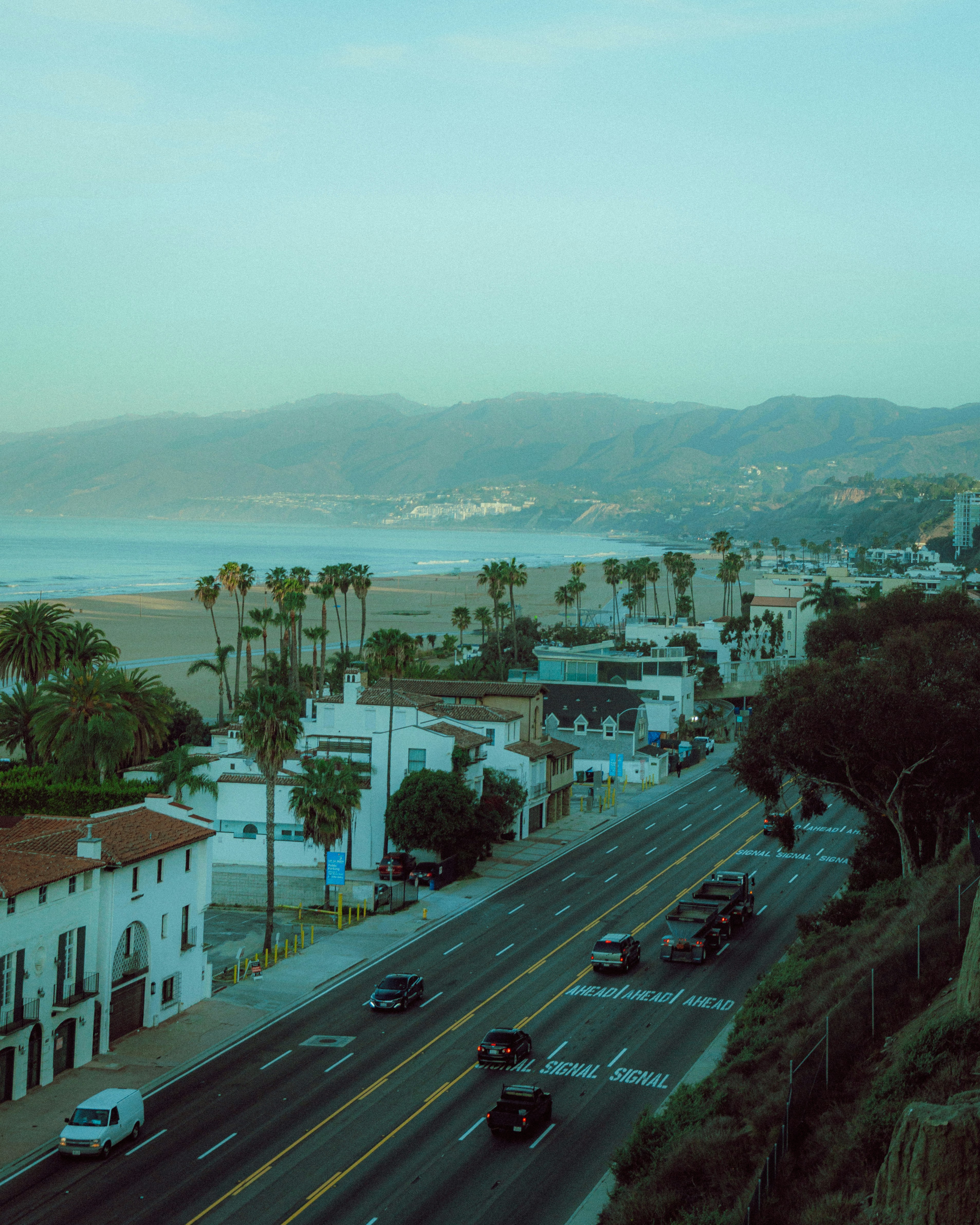 Scenic coastal highway with palm trees and blue sky in Kerala